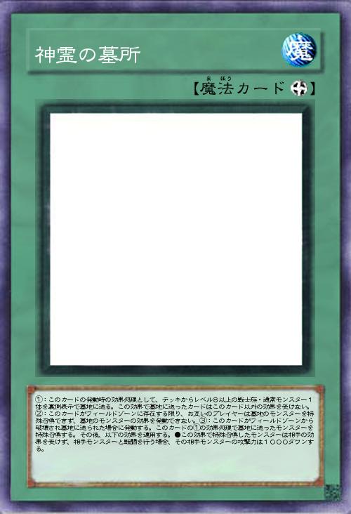| ①:このカードの発動時の効果処理として、デッキからレベル8以上の戦士族・通常モンスター1体を裏側表示で墓地に送る。この効果で墓地に送ったカードはこのカード以外の効果を受けない。②:このカードがフィールドゾーンに存在する限り、お互いのプレイヤーは墓地のモンスターを特殊召喚できず、墓地のモンスターの効果を発動できない。③:このカードがフィールドゾーンから破壊され墓地に送られた場合に発動する。このカードの①の効果処理で墓地に送ったモンスターを特殊召喚する。その後、以下の効果を適用する。●この効果で特殊召喚したモンスターは相手の効果を受けず、相手モンスターと戦闘を行う場合、その相手モンスターの攻撃力は1000ダウンする。 | |||