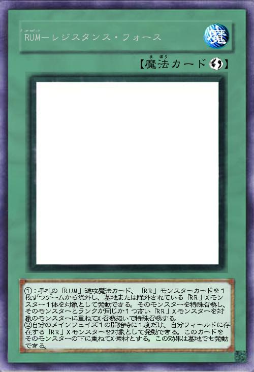 | ①:手札の「RUM」速攻魔法カード、「RR」モンスターカードを1枚ずつゲームから除外し、墓地または除外されている「RR」Xモンスター1体を対象として発動できる。そのモンスターを特殊召喚し、そのモンスターとランクが同じか1つ高い「RR」Xモンスターを対象のモンスターに重ねてX召喚扱いで特殊召喚する。 ②自分のメインフェイズ1の開始時に1度だけ、自分フィールドに存在する「RR」Xモンスターを対象として発動できる。このカードをそのモンスターの下に重ねてX素材とする。この効果は墓地でも発動できる。 | |||
