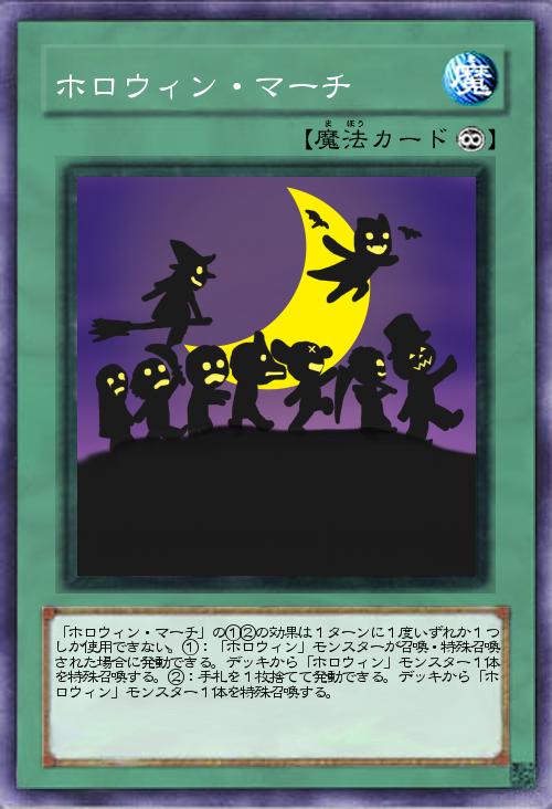 | 「ホロウィン・マーチ」の①②の効果は1ターンに1度いずれか1つしか使用できない。①:「ホロウィン」モンスターが召喚・特殊召喚された場合に発動できる。デッキから「ホロウィン」モンスター1体を特殊召喚する。②:手札を1枚捨てて発動できる。デッキから「ホロウィン」モンスター1体を特殊召喚する。 | |||