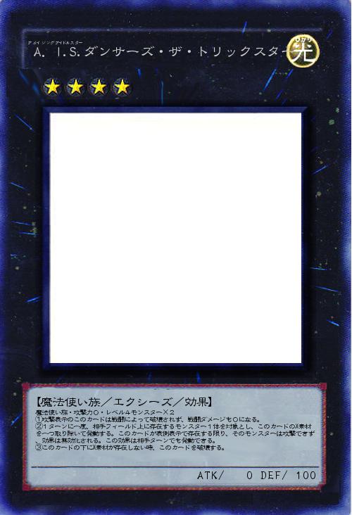 | 魔法使い族・攻撃力0・レベル4モンスター×2 ①攻撃表示のこのカードは戦闘によって破壊されず、戦闘ダメージも0になる。 ②1ターンに一度、相手フィールド上に存在するモンスター1体を対象とし、このカードのX素材を一つ使って発動する。このカードが表側表示で存在する限り、そのモンスターは攻撃できず、効果は無効化される。この効果は相手ターンでも発動できる。 ③このカードの下にX素材が存在しない時、このカードを破壊する。 | |||