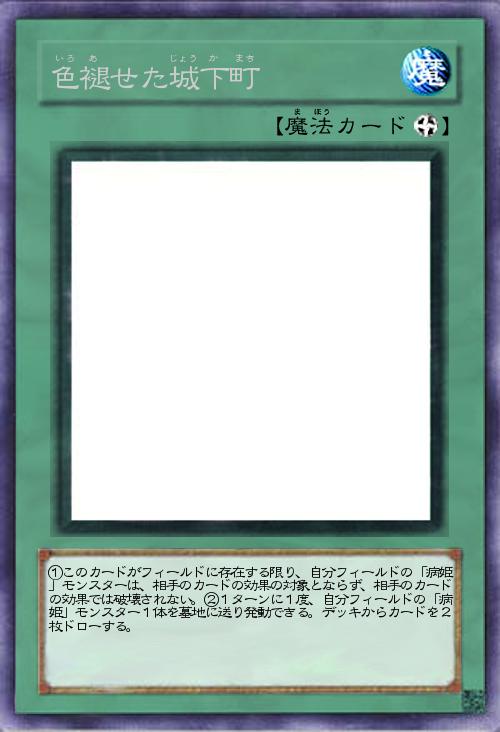 | ①このカードがフィールドに存在する限り、自分フィールドの「病姫」モンスターは、相手のカードの効果の対象とならず、相手のカードの効果では破壊されない。②1ターンに1度、自分フィールドの「病姫」モンスター1体を墓地に送り発動できる。デッキからカードを2枚ドローする。 | |||