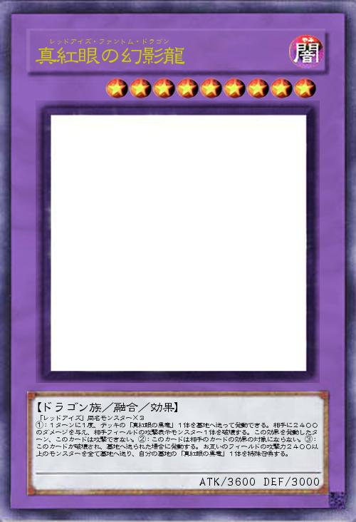 | 「レッドアイズ」同名モンスター×3 ①:1ターンに1度、デッキの「真紅眼の黒竜」1体を墓地へ送って発動できる。相手に2400のダメージを与え、相手フィールドの攻撃表示モンスター1体を破壊する。この効果を発動したターン、このカードは攻撃できない。②:このカードは相手のカードの効果の対象にならない。③:このカードが破壊され、墓地へ送られた場合に発動する。お互いのフィールドの攻撃力2400以上のモンスターを全て墓地へ送り、自分の墓地の「真紅眼の黒竜」1体を特殊召喚する。 | |||