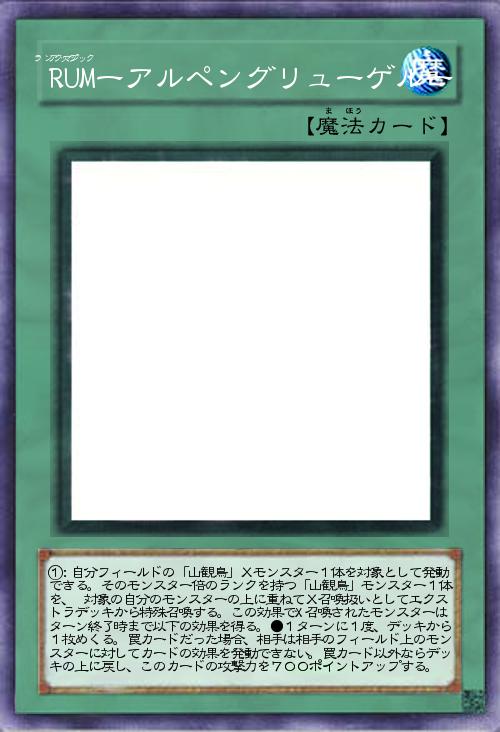 | ①:自分フィールドの「山観鳥」Xモンスター1体を対象として発動できる。そのモンスター倍のランクを持つ「山観鳥」モンスター1体を、 対象の自分のモンスターの上に重ねてX召喚扱いとしてエクストラデッキから特殊召喚する。この効果でX召喚されたモンスターはターン終了時まで以下の効果を得る。●1ターンに1度、デッキから1枚めくる。罠カードだった場合、相手は相手のフィールド上のモンスターに対してカードの効果を発動できない。罠カード以外ならデッキの上に戻し、このカードの攻撃力を700ポイントアップする。 | |||