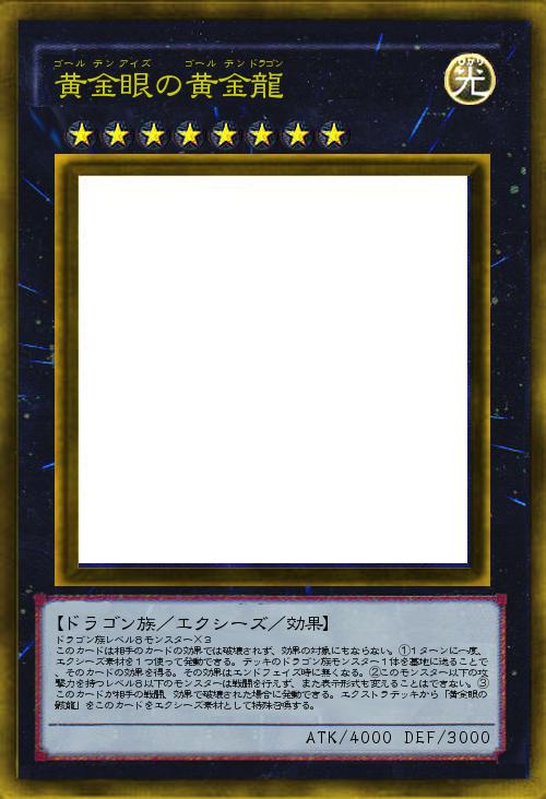 | ドラゴン族レベル8モンスター×3 このカードは相手のカードの効果では破壊されず、効果の対象にもならない。①1ターンに一度、エクシーズ素材を1つ使って発動できる。デッキのドラゴン族モンスター1体を墓地に送ることで、そのカードの効果を得る。その効果はエンドフェイズ時に無くなる。②このモンスター以下の攻撃力を持つレベル8以下のモンスターは戦闘を行えず、また表示形式も変えることはできない。③このカードが相手の戦闘、効果で破壊された場合に発動できる。エクストラデッキから「黄金眼の骸龍」をこのカードをエクシーズ素材として特殊召喚する。 | |||