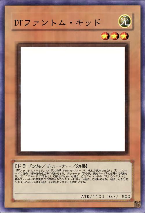 | 「DTファントム・キッド」の①②の効果はそれぞれ1ターンに1度しか使用できない。①:このカードの召喚・特殊召喚成功時に発動できる。デッキから「予告状」魔法カード1枚を選んで発動する。②:このカードがS素材として墓地に送られた場合、自分フィールドの「DT」モンスターと相手フィールドに表側表示で存在するモンスターを1体ずつ選択して発動できる。選択した自分モンスターのカード名を選択した相手モンスターと同じにする。 | |||