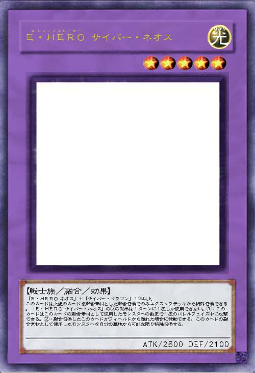 | 「E・HERO ネオス」+「サイバー・ドラゴン」1体以上 このカードは上記のカードを融合素材とした融合召喚でのみエクストラデッキから特殊召喚できる。「E・HERO サイバー・ネオス」の②の効果は1ターンに1度しか使用できない。①:このカードはこのカードの融合素材として使用したモンスターの数まで1度のバトルフェイズ中に攻撃できる。②:融合召喚したこのカードがフィールドから離れた場合に発動できる。このカードの融合素材として使用したモンスターを自分の墓地から可能な限り特殊召喚する。 | |||