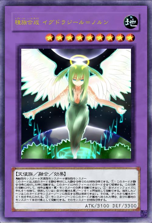 種族に関しては、世界樹だから植物族、女神だから天使族、そしてユグドラシルの頂上にはフレスヴェルグという巨大な鷲が留まっているという逸話から鳥獣族、となっております。