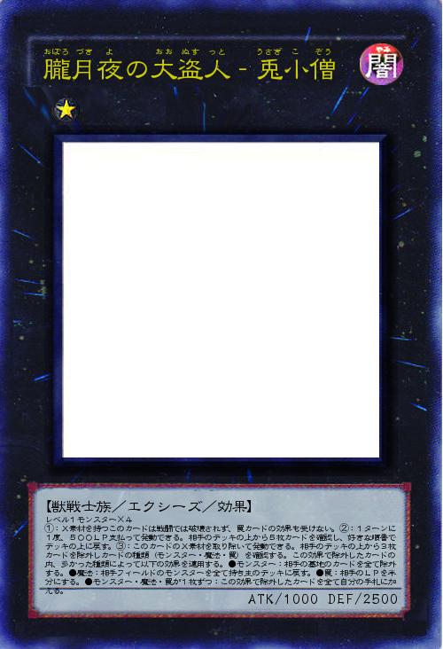 レベル1を4体要求するやや面倒な兎。されどそこそこ高い耐性でしぶとく、相手のデッキも覗ける。そして③効果が変わり種で相手のデッキトップ3枚を除外してその種類の内訳で効果が変化するというもの。ただ②である程度調整できるものの、基本的には相手のデッキ依存なので狙った効果を狙えるかは微妙。
