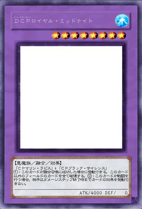 | 「CPマリン・ラピス」+「CPブラック・サイレンス」 ①:このカードが融合召喚に成功した場合に発動できる。このカード以外のフィールドのカードを全て破壊する。②:このカードが戦闘を行う場合、相手はダメージステップ終了時までカードの効果を発動できない。 | |||