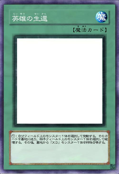 | ①:自分フィールド上のモンスター1体を選択して発動する。そのカードを墓地に送り、相手フィールド上のモンスター1体を選択して破壊する。その後、墓地から「XD」モンスター1体を特殊召喚する。 | |||