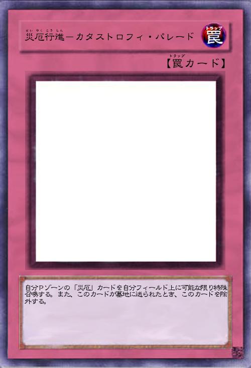 | 自分Pゾーンの「災厄」カードを自分フィールド上に可能な限り特殊召喚する。また、このカードが墓地に送られたとき、このカードを除外する。 | |||