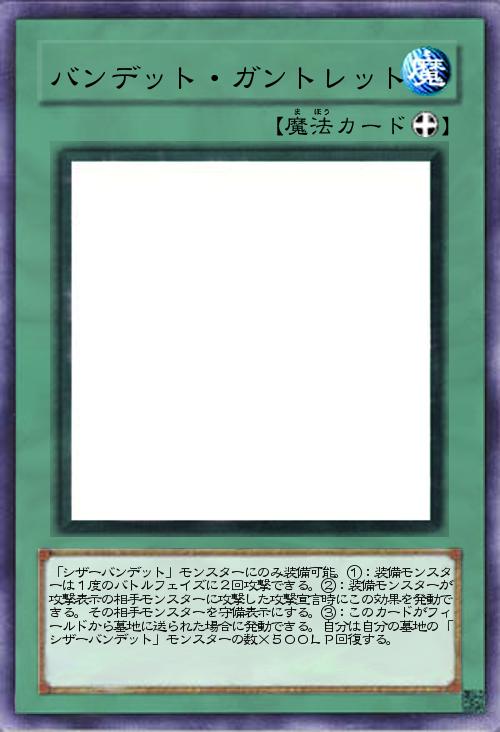 | 「シザーバンデット」モンスターにのみ装備可能。①:装備モンスターは1度のバトルフェイズに2回攻撃できる。②:装備モンスターが攻撃表示の相手モンスターに攻撃した攻撃宣言時にこの効果を発動できる。その相手モンスターを守備表示にする。③:このカードがフィールドから墓地に送られた場合に発動できる。自分は自分の墓地の「シザーバンデット」モンスターの数×500LP回復する。 | |||