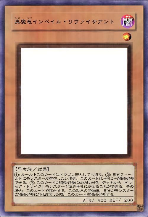 | ①:ルール上このカードはドラゴン族としても扱う。②:自分フィールドにモンスターが存在しない場合、このカードは手札から特殊召喚できる。③:このカードが特殊召喚に成功した時、デッキから「インセク・ドレイク」モンスター1体を手札に加えることができる。その場合、このカードを除外する。この効果の発動後、自分がモンスターの特殊召喚に2回成功した時、このカードを特殊召喚する。 | |||