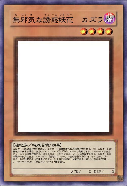 | このカードは通常召喚できない。このカードは墓地からのみ特殊召喚できる。(1):このカードが墓地に存在する場合、自分のメインフェイズ2に1000LP払って発動できる。このカードを自分フィールドに特殊召喚する。(2):このカードがモンスターゾーンに存在する限り、このカードの攻撃力守備力は自分フィールドの「妖花カウンター」の数の合計×200ポイントになる。(3):このカードの戦闘によって相手LPにダメージを与えた場合、発動できる。自分LPを800LP回復し、このカードの上に「妖花カウンター」1個を置く。 | |||