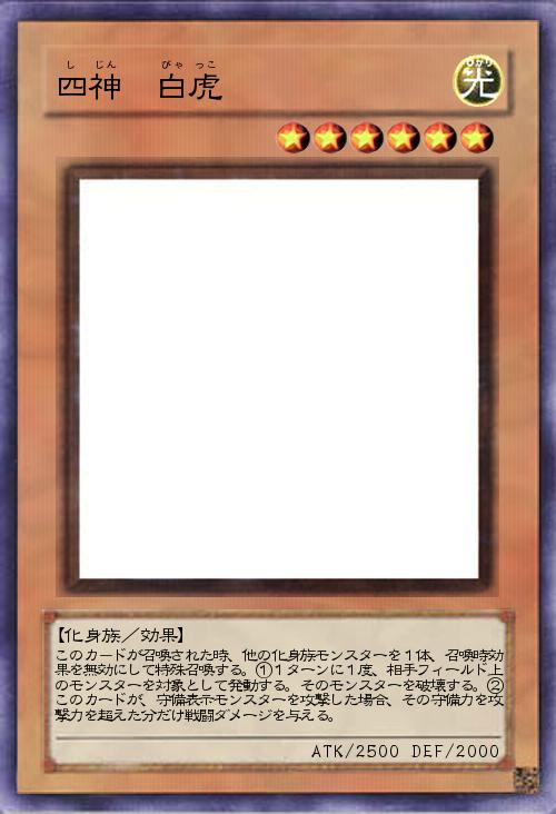 召喚時に他の化身を呼べる…らしいが、どこから、と明記されていない他、「他の」という書き方は「四神 白虎」と書き直すことが可能です。また「召喚した時に発動する」等と書くとOCGっぽい。