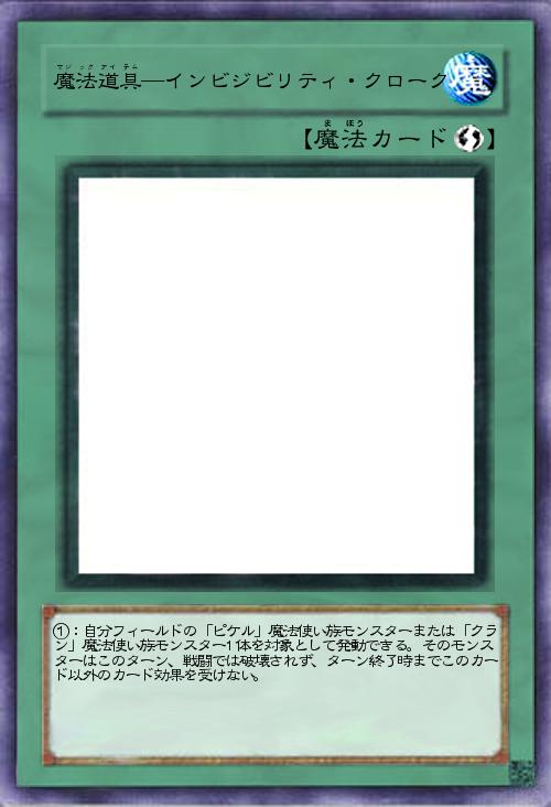 インビジビリティ・クロークとは透明マントの英語で、このマントで敵から身を隠すという意味で、このカード名と効果を考えました。」(2016-08-23 20:54)