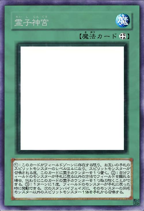 | ①:このカードがフィールドゾーンに存在する限り、お互いの手札のスピリットモンスターのレベルは4になり、スピリットモンスターが召喚される度、このカードに霊子カウンターを1つ置く。②:自分フィールドのモンスターが手札に戻る以外の方法でフィールドを離れる場合、代わりにこのカードの霊子カウンターを1つ取り除くことができる。③:1ターンに1度、フィールドのモンスターが手札に戻った時に発動できる。次のスタンバイフェイズに、そのモンスターの同名モンスター以外のスピリットモンスター1体を手札から召喚する。 | |||