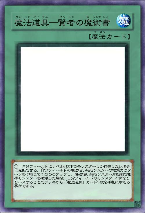 | ①:自分フィールドにレベル4以下のモンスターしか存在しない場合に発動できる。自分フィールドの魔法使い族モンスターの攻撃力はターン終了時まで1000アップし、魔法使い族モンスターが戦闘で相手モンスターを破壊した場合、自分フィールドのモンスター1体をリリースすることでデッキから「魔法道具」カード1枚を手札に加える事ができる。 | |||