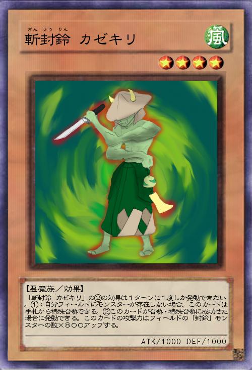 | 「斬封鈴 カゼキリ」の②の効果は1ターンに1度しか発動できない。①:自分フィールドにモンスターが存在しない場合、このカードは手札から特殊召喚できる。②このカードが召喚・特殊召喚に成功せた場合に発動できる。このカードの攻撃力はフィールドの「封鈴」モンスターの数×800アップする。 | |||