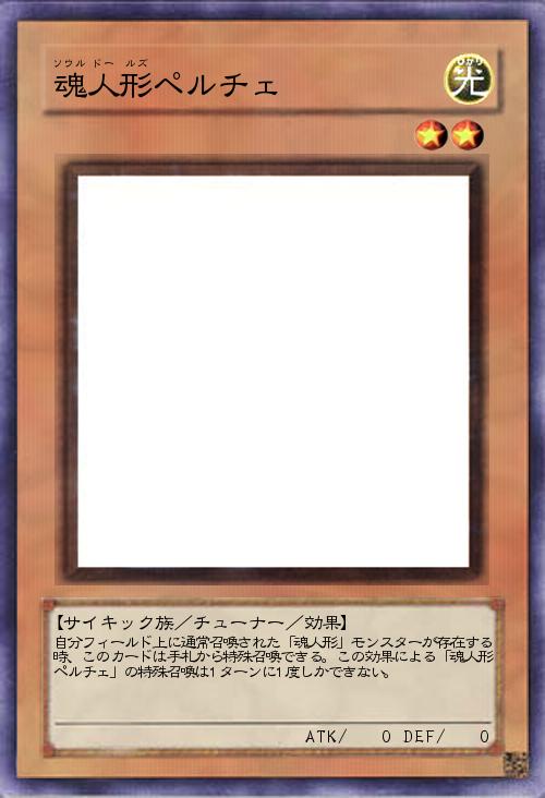 | 自分フィールド上に通常召喚された「魂人形」モンスターが存在する時、このカードは手札から特殊召喚できる。この効果による「魂人形ペルチェ」の特殊召喚は1ターンに1度しかできない。 | |||