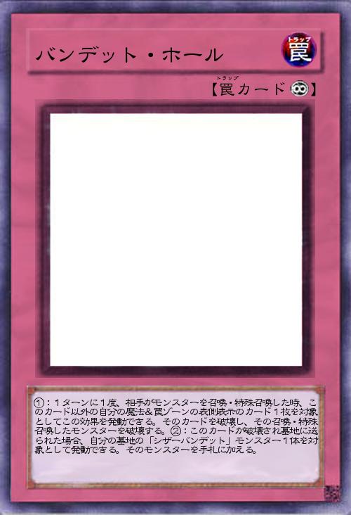 | ①:1ターンに1度、相手がモンスターを召喚・特殊召喚した時、このカード以外の自分の魔法&罠ゾーンの表側表示のカード1枚を対象としてこの効果を発動できる。そのカードを破壊し、その召喚・特殊召喚したモンスターを破壊する。②:このカードが破壊され墓地に送られた場合、自分の墓地の「シザーバンデット」モンスター1体を対象として発動できる。そのモンスターを手札に加える。 | |||