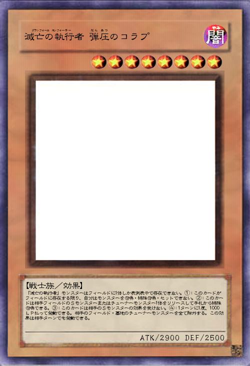 | 「滅亡の執行者」モンスターはフィールドに1体しか表側表示で存在できない。①:このカードがフィールドに存在する限り、自分はモンスターを召喚・特殊召喚・セットできない。②:このカードは相手フィールドのSモンスターまたはチューナーモンスター1体をリリースして手札から特殊召喚できる。③:このカードは相手のSモンスターの効果を受けない。④:1ターンに1度、1000LP払って発動できる。相手のフィールド・墓地のチューナーモンスターを全て除外する。この効果は相手ターンでも発動できる。 | |||