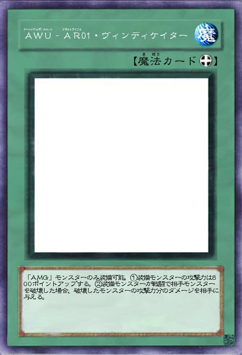 | 「AMG」モンスターのみ装備可能。①装備モンスターの攻撃力は800ポイントアップする。②装備モンスターが戦闘で相手モンスターを破壊した場合、破壊したモンスターの攻撃力分のダメージを相手に与える。 | |||