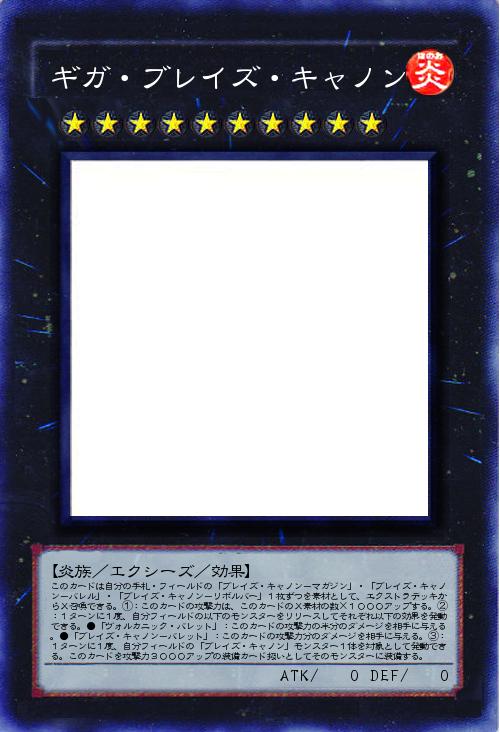 | このカードは自分の手札・フィールドの「ブレイズ・キャノン-マガジン」・「ブレイズ・キャノン-バレル」・「ブレイズ・キャノン-リボルバー」1枚ずつを素材として、エクストラデッキからX召喚できる。①:このカードの攻撃力は、このカードのX素材の数×1000アップする。②:1ターンに1度、自分フィールドの以下のモンスターをリリースしてそれぞれ以下の効果を発動できる。●「ヴォルカニック・バレット」:このカードの攻撃力の半分のダメージを相手に与える。●「ブレイズ・キャノン-バレット」:このカードの攻撃力分のダメージを相手に与える。③:1ターンに1度、自分フィールドの「ブレイズ・キャノン」モンスター1体を対象として発動できる。このカードを攻撃力3000アップの装備カード扱いとしてそのモンスターに装備する。 | |||