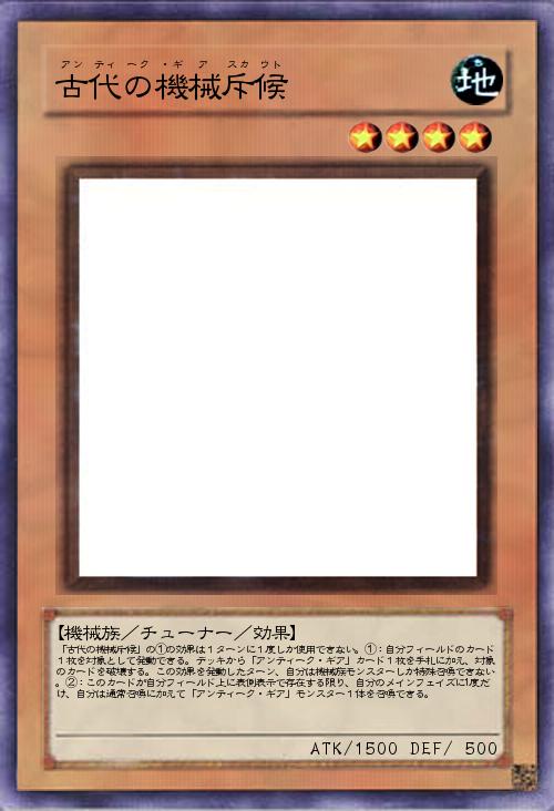 | 「古代の機械斥候」の①の効果は1ターンに1度しか使用できない。①:自分フィールドのカード1枚を対象として発動できる。デッキから「アンティーク・ギア」カード1枚を手札に加え、対象のカードを破壊する。この効果を発動したターン、自分は機械族モンスターしか特殊召喚できない。②:このカードが自分フィールド上に表側表示で存在する限り、自分のメインフェイズに1度だけ、自分は通常召喚に加えて「アンティーク・ギア」モンスター1体を召喚できる。 | |||