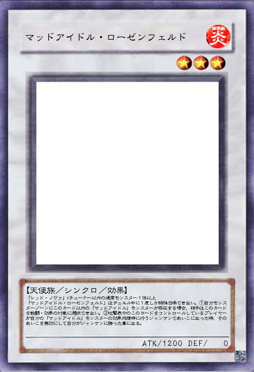 「「お前にはこのカードがお似合いだ」とかなんとかで渡された謎のチューナーモンスターを使ってシンクロ召喚したらマッドアイドル候補生が凄いことになった。ジャンケンでみんなをサティスファクションするマッドアイドル最後の1枚にしてエースモンスター。果たしてこのカテゴリーでみんなが笑顔になってくれたのかどうか色んな疑問が残るけれども、もうそんな事はどうでもいい。デュエルだ!