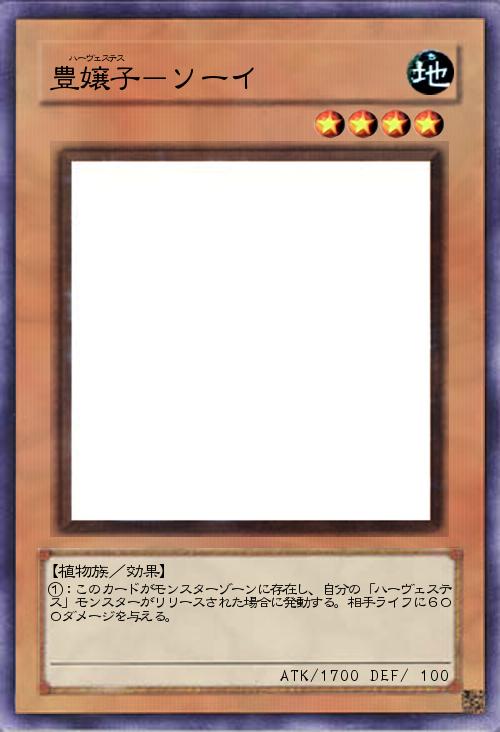 | ①:このカードがモンスターゾーンに存在し、自分の「ハーヴェステス」モンスターがリリースされた場合に発動する。相手ライフに600ダメージを与える。 | |||