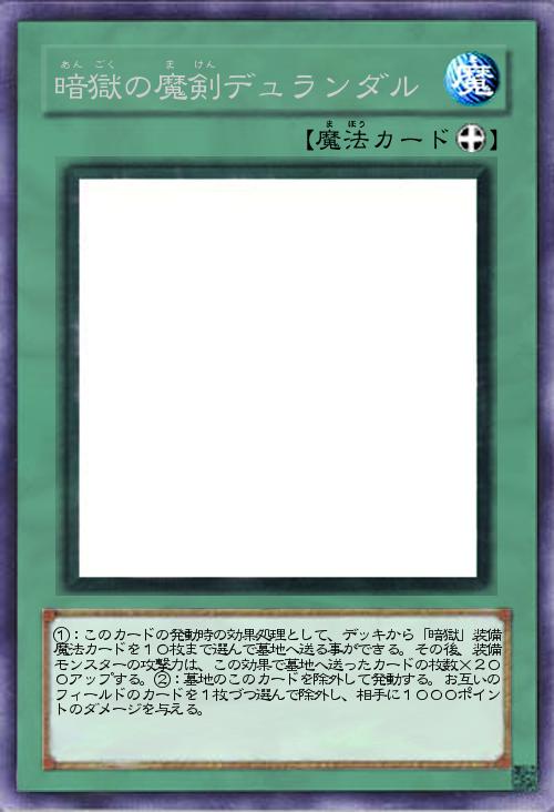 | ①:このカードの発動時の効果処理として、デッキから「暗獄」装備魔法カードを10枚まで選んで墓地へ送る事ができる。その後、装備モンスターの攻撃力は、この効果で墓地へ送ったカードの枚数×200アップする。②:墓地のこのカードを除外して発動する。お互いのフィールドのカードを1枚づつ選んで除外し、相手に1000ポイントのダメージを与える。 | |||