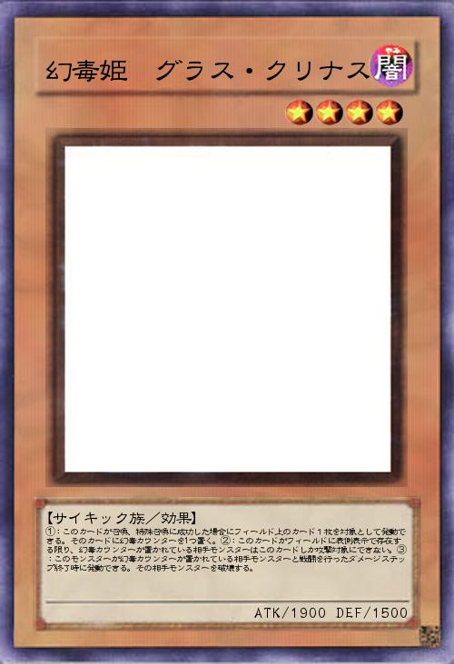 | ①:このカードが召喚、特殊召喚に成功した場合にフィールド上のカード1枚を対象として発動できる。そのカードに幻毒カウンターを1つ置く。②:このカードがフィールドに表側表示で存在する限り、幻毒カウンターが置かれている相手モンスターはこのカードしか攻撃対象にできない。③:このモンスターが幻毒カウンターが置かれている相手モンスターと戦闘を行ったダメージステップ終了時に発動できる。その相手モンスターを破壊する。 | |||