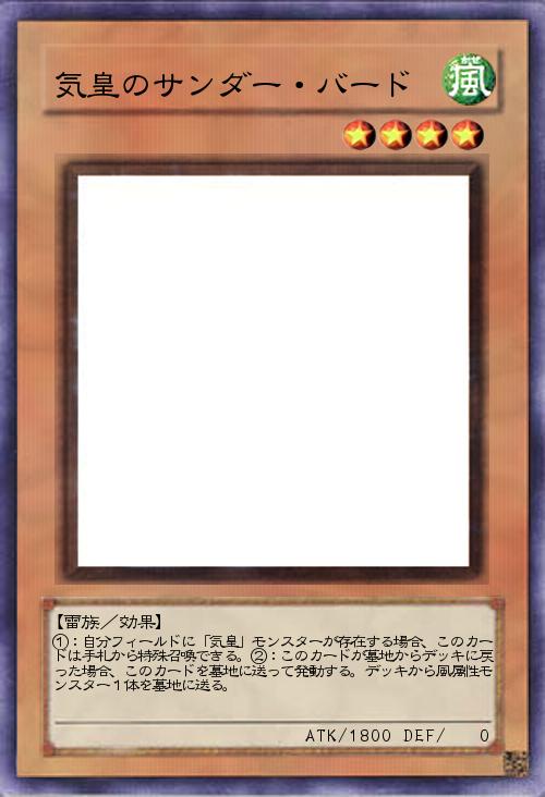 | ①:自分フィールドに「気皇」モンスターが存在する場合、このカードは手札から特殊召喚できる。②:このカードが墓地からデッキに戻った場合、このカードを墓地に送って発動する。デッキから風属性モンスター1体を墓地に送る。 | |||
