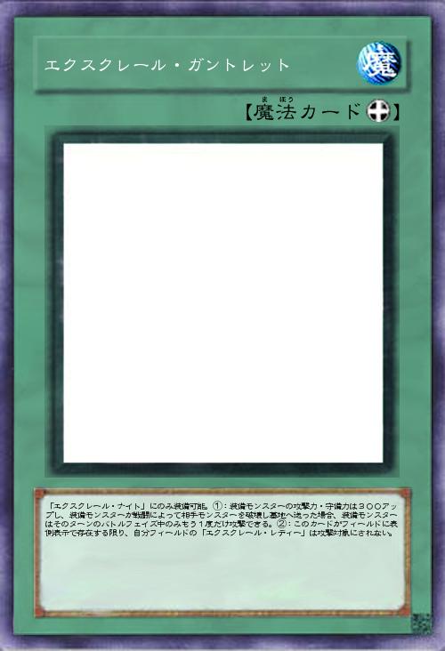 | 「エクスクレール・ナイト」にのみ装備可能。①:装備モンスターの攻撃力・守備力は300アップし、装備モンスターが戦闘によって相手モンスターを破壊し墓地へ送った場合、装備モンスターはそのターンのバトルフェイズ中のみもう1度だけ攻撃できる。②:このカードがフィールドに表側表示で存在する限り、自分フィールドの「エクスクレール・レディー」は攻撃対象にされない。 | |||