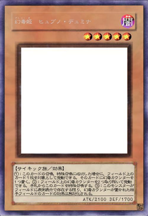 | ①:このカードの召喚、特殊召喚に成功した場合に、フィールド上のカード1枚を対象として発動できる。そのカードに幻毒カウンターを1つ置く。②:フィールド上の幻毒カウンターを2つ取り除いて発動できる。手札からこのカードを特殊召喚する。③:このモンスターがフィールドに表側表示で存在する限り、幻毒カウンターが置かれた相手フィールドのカードの効果は無効化される。 | |||