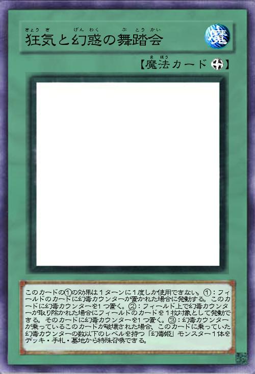 | このカードの①の効果は1ターンに1度しか使用できない。①:フィールドのカードに幻毒カウンターが置かれた場合に発動する。このカードに幻毒カウンターを1つ置く。②:フィールド上で幻毒カウンターが取り除かれた場合にフィールドのカードを1枚対象として発動できる。そのカードに幻毒カウンターを1つ置く。③:幻毒カウンターが乗っているこのカードが破壊された場合、このカードに乗っていた幻毒カウンターの数以下のレベルを持つ「幻毒姫」モンスター1体をデッキ・手札・墓地から特殊召喚できる。 | |||
