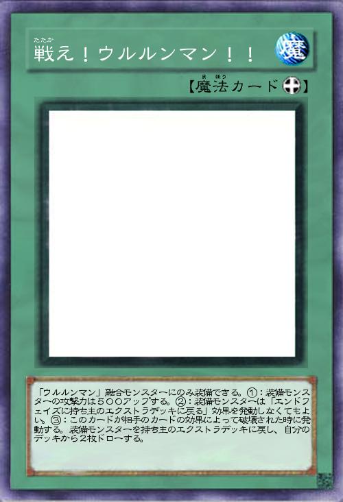 装備すればチート性能の融合ウルルンマンを場に維持できる装備カード。ただし同時にこのカードがアキレス腱になるのが最大の欠点。何も考えずに発動していいカードではないので、最低でも万能カウンターくらいは伏せておきましょう。」(2016-09-24 23:34)