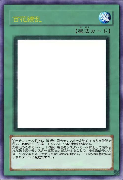 | ①自分フィールド上に「幻奏」融合モンスターが存在するとき発動できる。墓地から「幻奏」モンスター1体を特殊召喚する。 ②墓地のこのカードと「幻奏」融合モンスターカードによって決められた融合素材モンスターを墓地から除外することで、その融合モンスター1体をエクストラデッキから融合召喚する。この効果は墓地に送られたターンに発動できない。 | |||