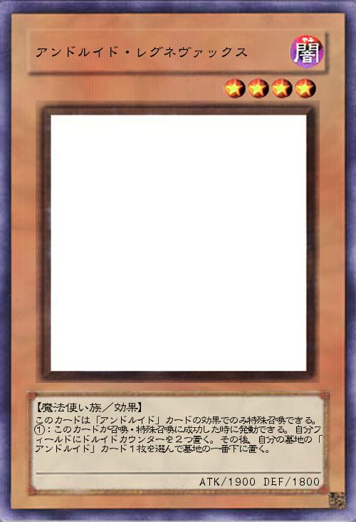| このカードは「アンドルイド」カードの効果でのみ特殊召喚できる。①:このカードが召喚・特殊召喚に成功した時に発動できる。自分フィールドにドルイドカウンターを2つ置く。その後、自分の墓地の「アンドルイド」カード1枚を選んで墓地の一番下に置く。 | |||