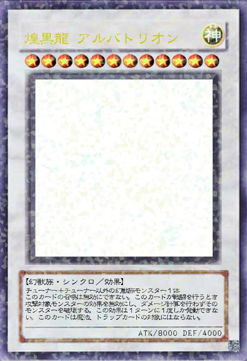 チューナー+チューナー以外の幻獣族モンスター1体 このカードの召喚は無効にできない。このカードが戦闘を行うとき攻撃対象モンスターの効果を無効にし、ダメージ計算を行わずそのモンスターを破壊する。この効果は1ターンに1度しか発動できない。このカードは魔法、トラップカードの対象にはならない。 |
