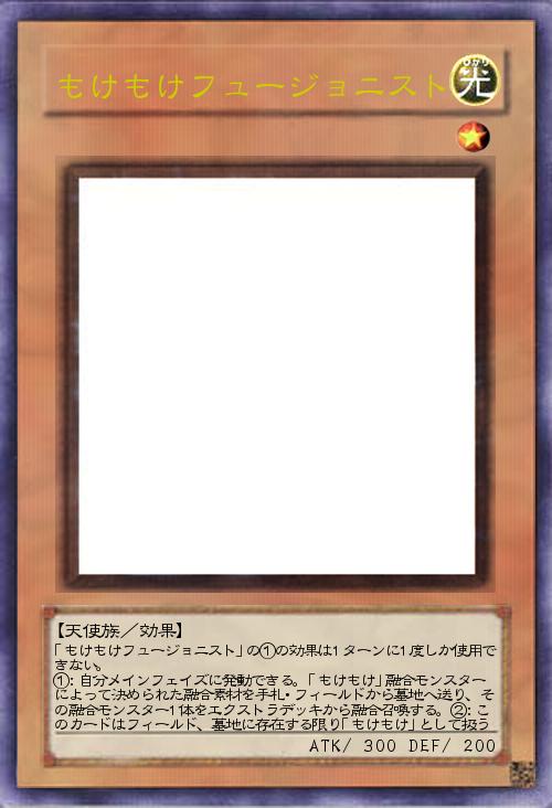 | 「もけもけフュージョニスト」の①の効果は1ターンに1度しか使用できない。 ①:自分メインフェイズに発動できる。「もけもけ」融合モンスターによって決められた融合素材を手札・フィールドから墓地へ送り、その融合モンスター1体をエクストラデッキから融合召喚する。②:このカードはフィールド、墓地に存在する限り「もけもけ」として扱う | |||