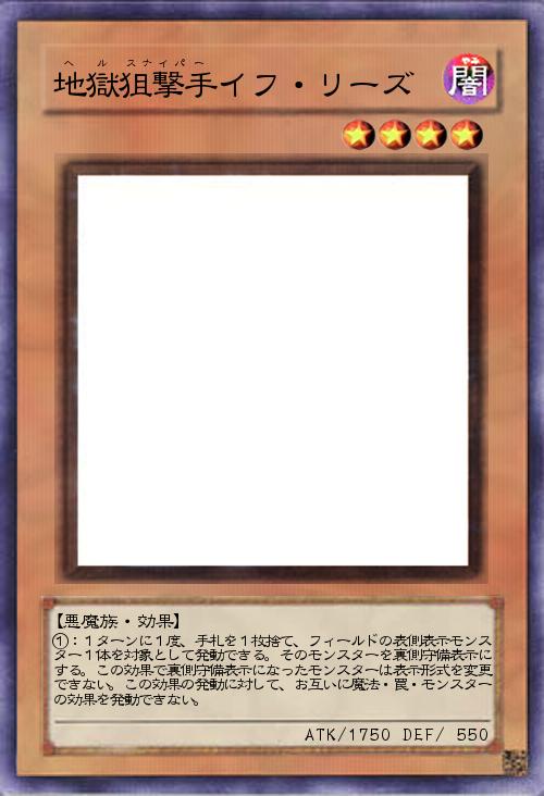 「2体目の地獄狙撃手。フリーズ効果(?)持ちです。相手の厄介なモンスターは攻撃できなくともフリーズさせておけば動けないので相手の盤面に対処しやすいカードとなっております。」(2016-10-05 07:24)