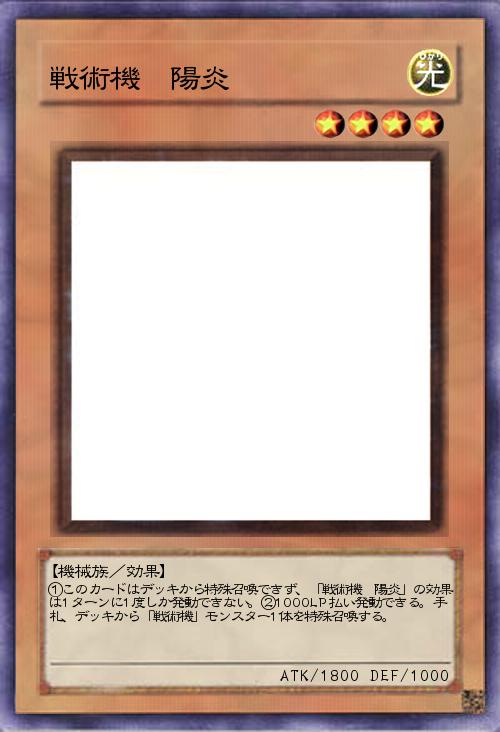 | ①このカードはデッキから特殊召喚できず、「戦術機 陽炎」の効果は1ターンに1度しか発動できない。②1000LP払い発動できる。手札、デッキから「戦術機」モンスター1体を特殊召喚する。 | |||
