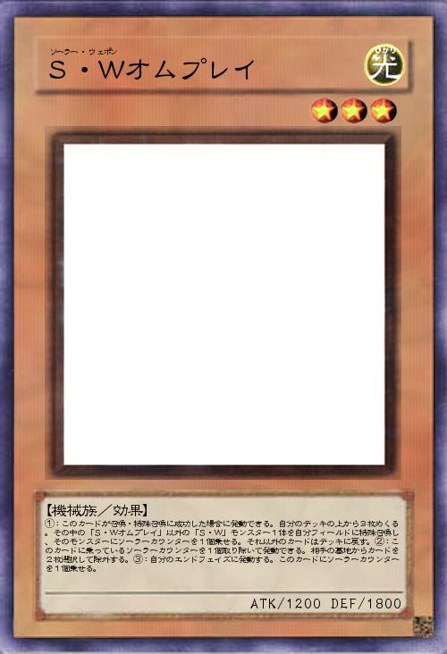 | ①:このカードが召喚・特殊召喚に成功した場合に発動できる。自分のデッキの上から3枚めくる。その中の「S・Wオムプレイ」以外の「S・W」モンスター1体を自分フィールドに特殊召喚し、そのモンスターにソーラーカウンターを1個乗せる。それ以外のカードはデッキに戻す。②:このカードに乗っているソーラーカウンターを1個取り除いて発動できる。相手の墓地からカードを2枚選択して除外する。③:自分のエンドフェイズに発動する。このカードにソーラーカウンターを1個乗せる。 | |||