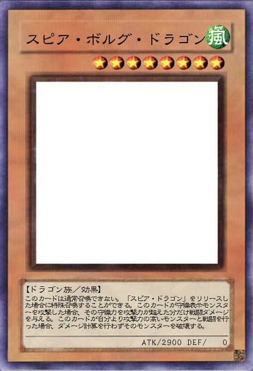 | このカードは通常召喚できない。「スピア・ドラゴン」をリリースした場合に特殊召喚することができる。このカードが守備表示モンスターを攻撃した場合、その守備力を攻撃力が超えた分だけ戦闘ダメージを与える。このカードが自分より攻撃力の高いモンスターと戦闘を行った場合、ダメージ計算を行わずそのモンスターを破壊する。 | |||