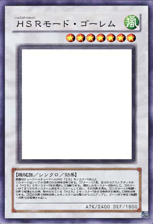 モード・ゴーレムの効果は、他のハイスピードロイドの効果を自由に使ことができる。そのかわりエクストラデッキの数が減り、除外されたモンスターは蘇生制限をクリアしてないから除外からの特殊召喚はできない。