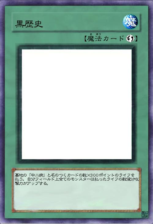 | 墓地の「中二病」と名のつくカードの数×300ポイントのライフを払う。自分フィールド上全てのモンスターは払ったライフの数値分攻撃力がアップする。 | |||