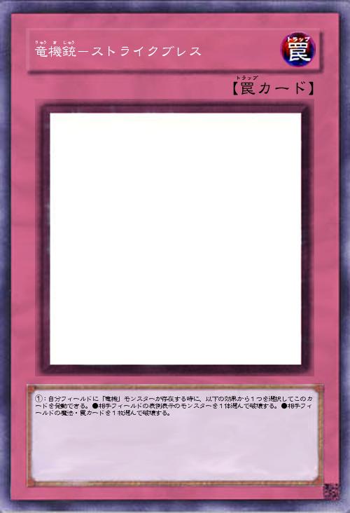 | ①:自分フィールドに「竜機」モンスターが存在する時に、以下の効果から1つを選択してこのカードを発動できる。●相手フィールドの表側表示のモンスターを1体選んで破壊する。●相手フィールドの魔法・罠カードを1枚選んで破壊する。 | |||