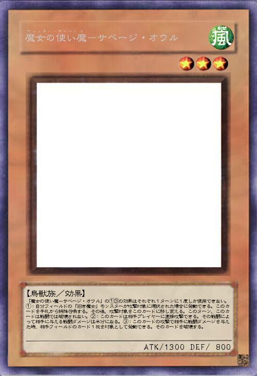 | 「魔女の使い魔-サベージ・オウル」の①③の効果はそれぞれ1ターンに1度しか使用できない。①:自分フィールドの「旧き魔女」モンスターが攻撃対象に選択された場合に発動できる。このカードを手札から特殊召喚する。その後、攻撃対象をこのカードに移し変える。このターン、このカードは戦闘では破壊されない。②:このカードは相手プレイヤーに直接攻撃できる。その戦闘によって相手に与える戦闘ダメージは半分になる。③:このカードの攻撃で相手に戦闘ダメージを与えた時、相手フィールドのカード1枚を対象として発動できる。そのカードを破壊する。 | |||